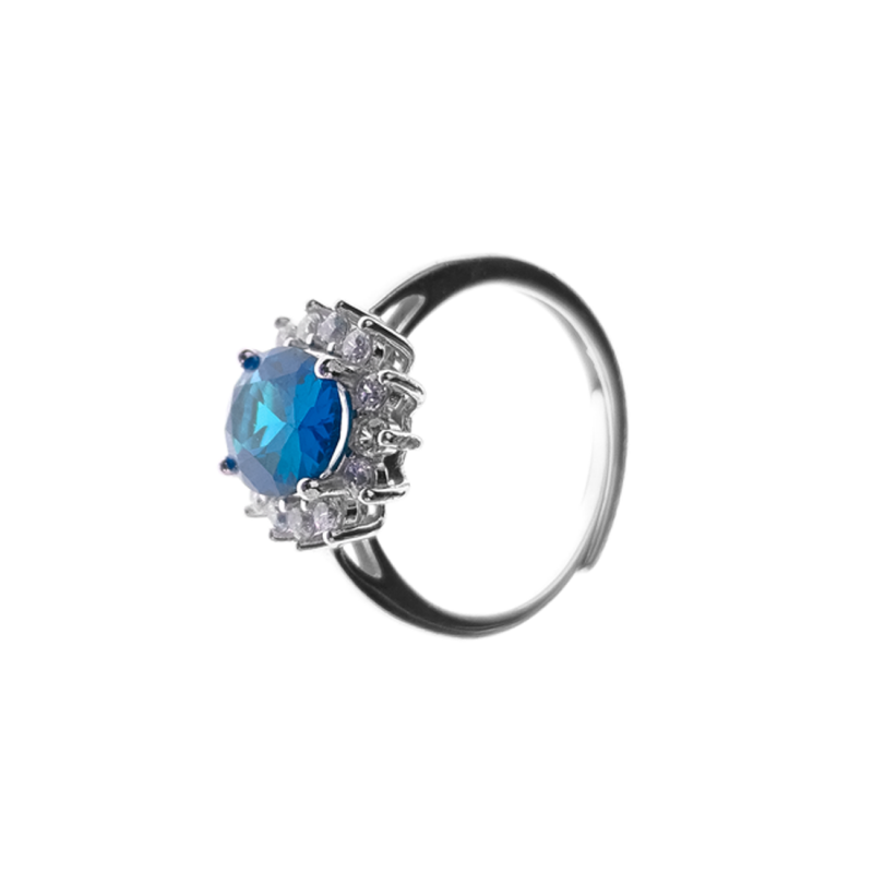 Anello regolabile in argento, con zaffiro, misura regolabile.